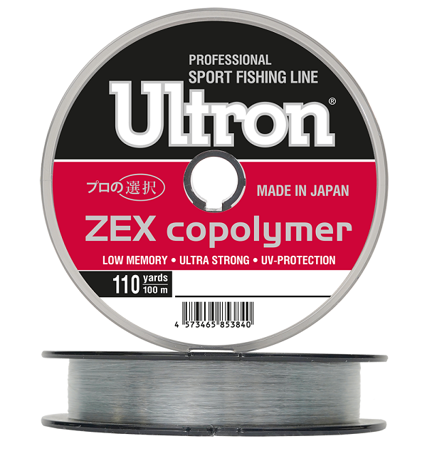 Ultron ZEX Copolymer –  высокопрочная рыболовная леска компании Momoi Fishing оптимальной мягкости из сополимера. Низкая растяжимость - высокая чувствительность к поклевке и точная подсечка. Отсутствует эффект памяти. Устойчива к низким температурам, сохраняя при этом свои свойства. Максимальная прочность даже при малом диаметре, износостойкость, длительный срок эксплуатации.