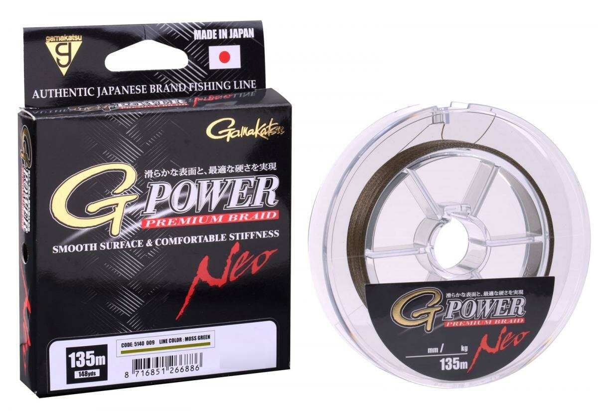 Шнур /Gamakatsu/ плетеный G-Power Premium Braid Neo 135м 0,16мм 9,1кг Green