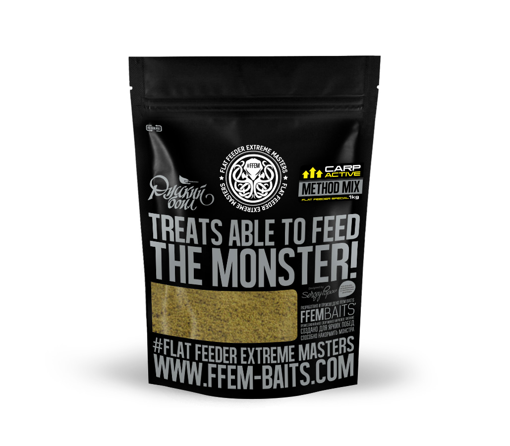 FFEM Method Mix Carp Active создан с применением технологии экструзии, в процессе которой происходит расщепление сложных углеводов на простые сахара, что обеспечивает существенное улучшение органолептических показателей микса, а также повышает усвояемость прикормки. В состав микса входят различные виды высококачественной рыбной муки (~20%), а также продукты пекарского производства, зародыш кукурузного зерна, белый люпин, конопляное семя, арахис, комплекс аминокислот, уникальные пищевые, вкусовые и ароматические добавки. Прикормка светлого желтого цвета, мелкофракционная, активная. Отличный выбор для ловли амура и карпа в теплое время года.