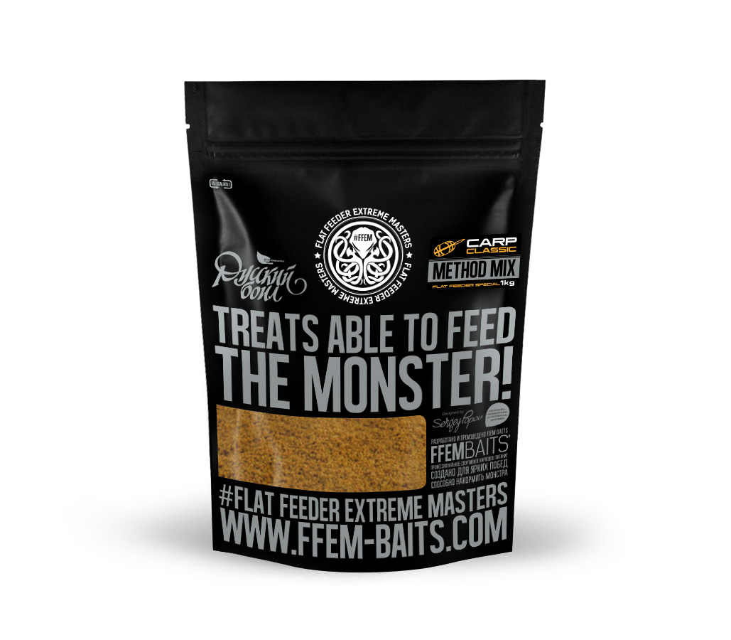FFEM Method Mix Carp Classic создан с применением технологии экструзии, в процессе которой происходит расщепление сложных углеводов на простые сахара, что обеспечивает существенное улучшение органолептических показателей микса, а также повышает усвояемость прикормки. В состав микса входят различные виды высококачественной рыбной муки (~20%), а также продукты пекарского производства, зародыш кукурузного зерна, белый люпин, конопляное семя, арахис, комплекс аминокислот, уникальные пищевые, вкусовые и ароматические добавки. Прикормка мелкофракционная, желтого цвета, имеет сладкий вкус и приятный аромат кукурузы и карамели. Настоящая классика летней ловли любой белой рыбы.